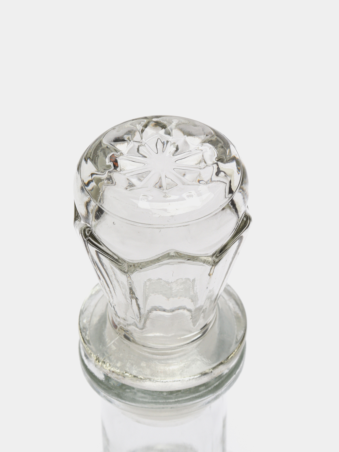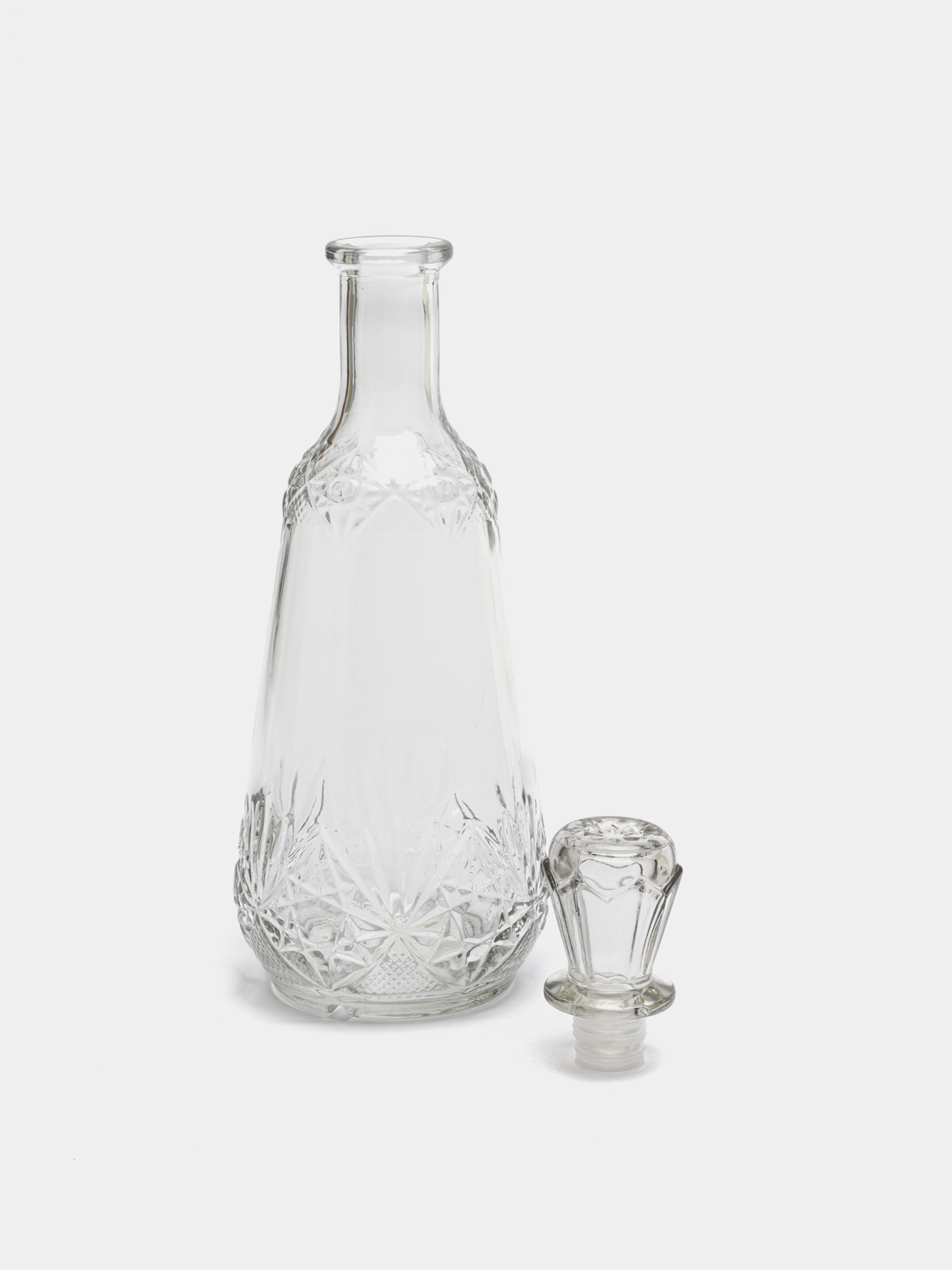 Штоф «Классик» выполнен из термостойкого и прочного стекла, которое не вступает в химические реакции со спиртом, сохраняет все вкусовые и ароматические качества напитков. Выполненная из качественного стекла и украшена красивым узором, бутылка имеет плотно закрывающуюся стеклянную пробку, которая не позволит выдохнуться аромату напитков и будет храниться в течение долгого времени. Элегантный дизайн изделия украсит собой любой праздничный стол, в таком штофе вы сможете подать вино, морс, различные наливки и ликеры. Он органично дополнит сервировку стола благодаря изящному дизайну и хрустальному блеску. Крышка графина повторяет шарообразную форму-с узором , что выглядит эффектно на столе. За счет гладкой внутренней поверхности, изделие легко мыть. Не в подарочной упаковке. Бутылка (графин Штоф) из бесцветного стекла "Классик", вместимостью - 500 мл высотой (без пробки) 21 см. Габариты: длина 9 см., ширина 9 см., высота с пробкой 27 см.